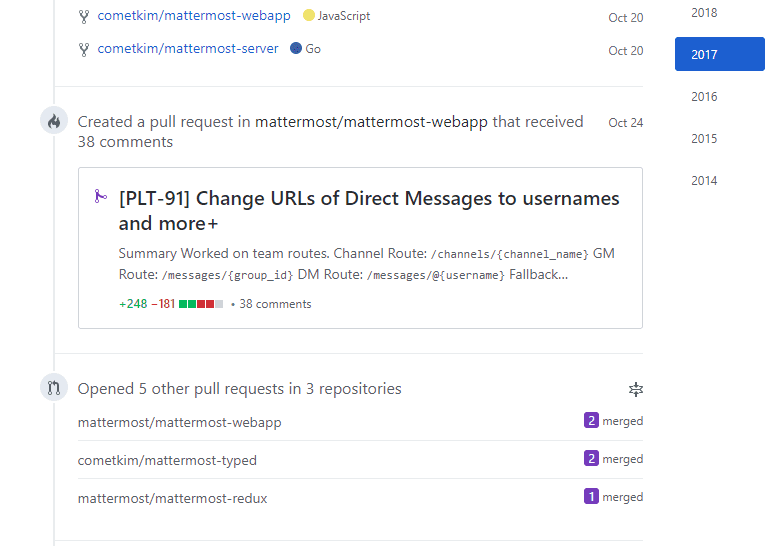 내게 영향을 준건 8할이 오픈소스이다. 나도 오픈소스에 뭔가 공헌해야 바람직하다. 훌륭한 기회를 주었던 Mattermost에 기여가 많이 뜸해졌는데 이참에 바로잡아야겠다.