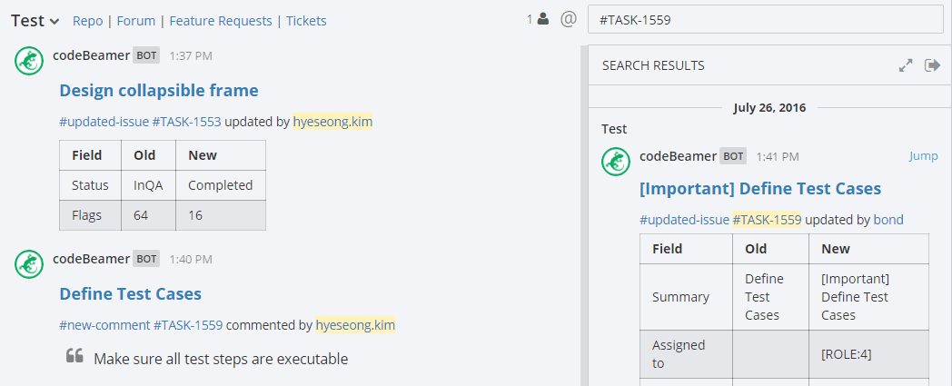 이런 풍부한 컨텍스트가 Integration 만들 때 Markdown 지원과 합해져서 빛을 봅니다. 예를 들면 이슈트래커 도구와의 Integration을 이런식으로 만들 수도 있습니다.