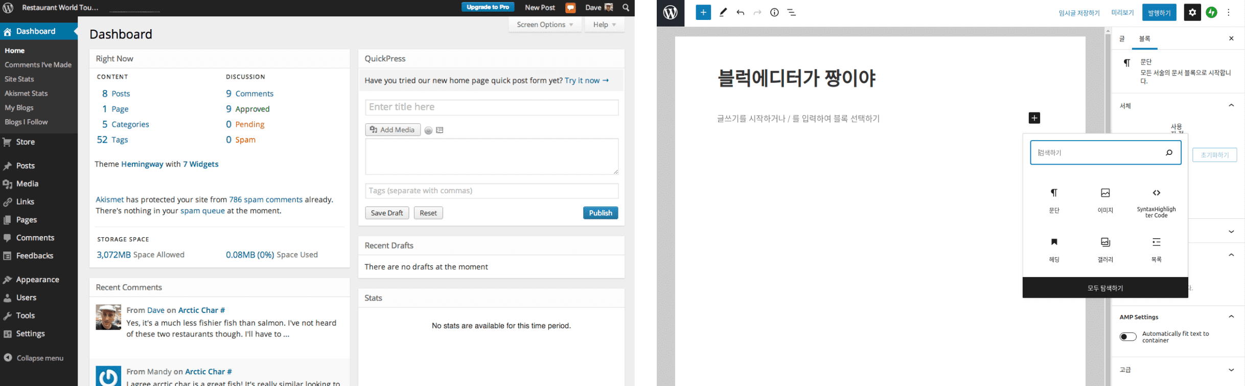 워드프레스 닷컴과 구텐베르크 에디터